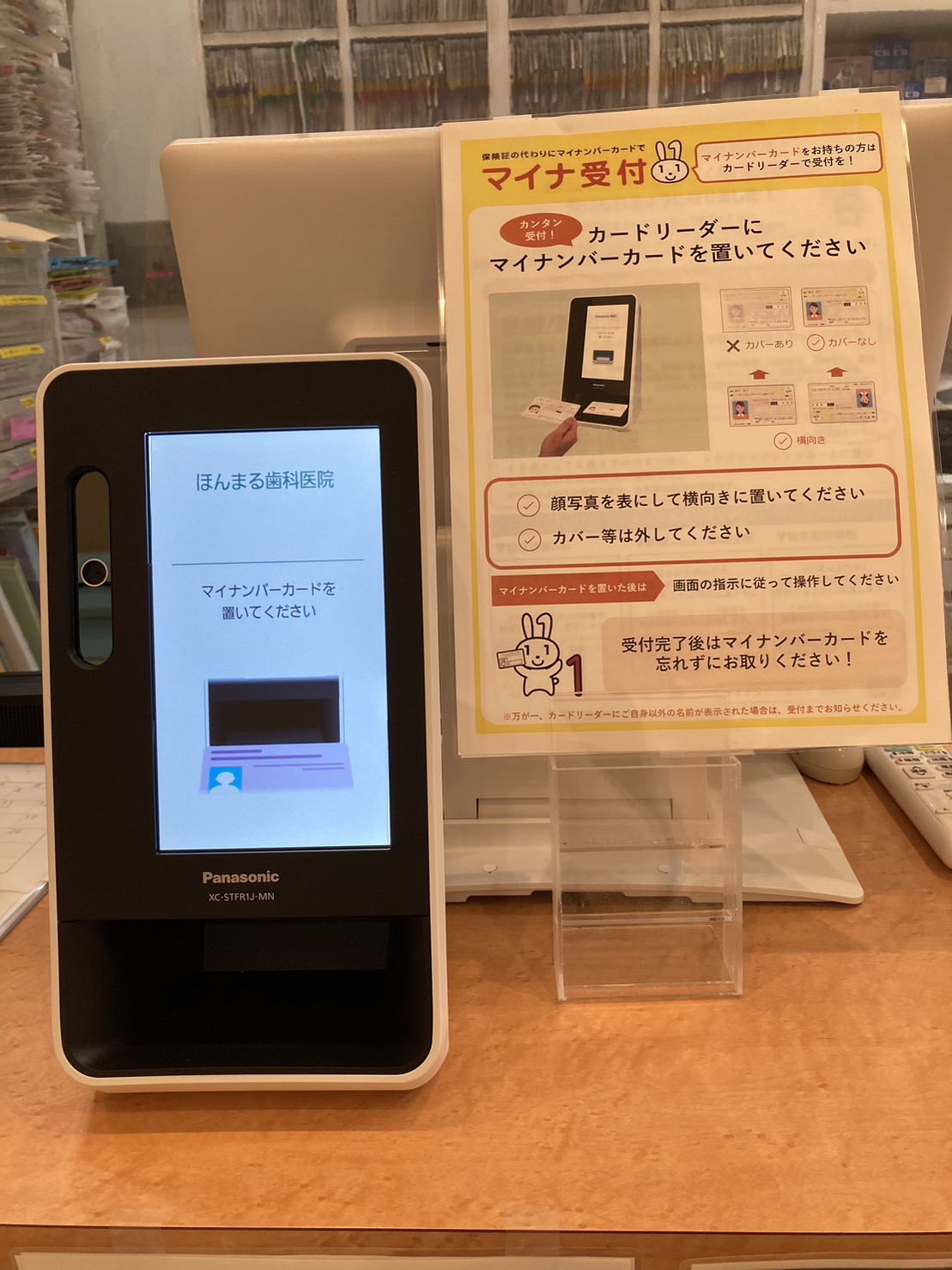 受付中央に、オンライン資格確認専用の機器が設置してあります。